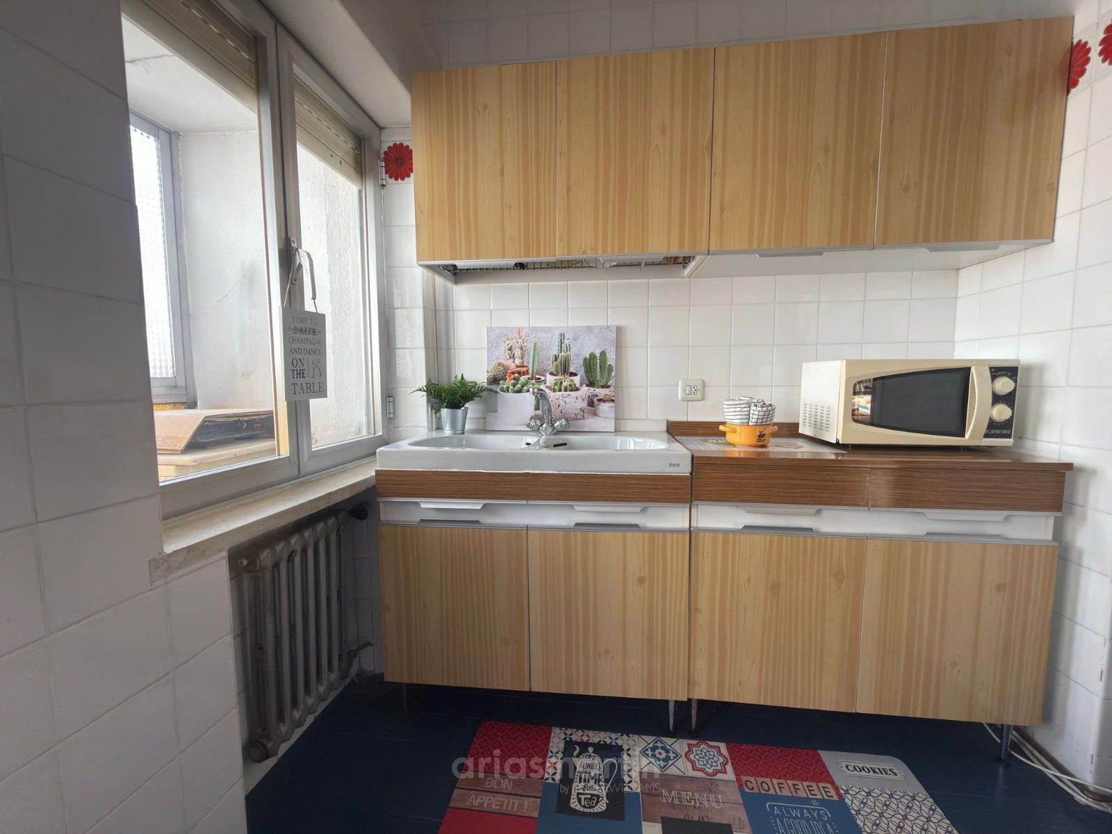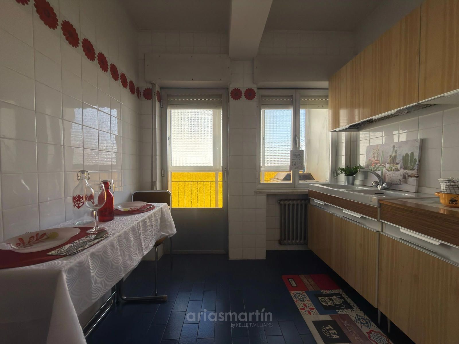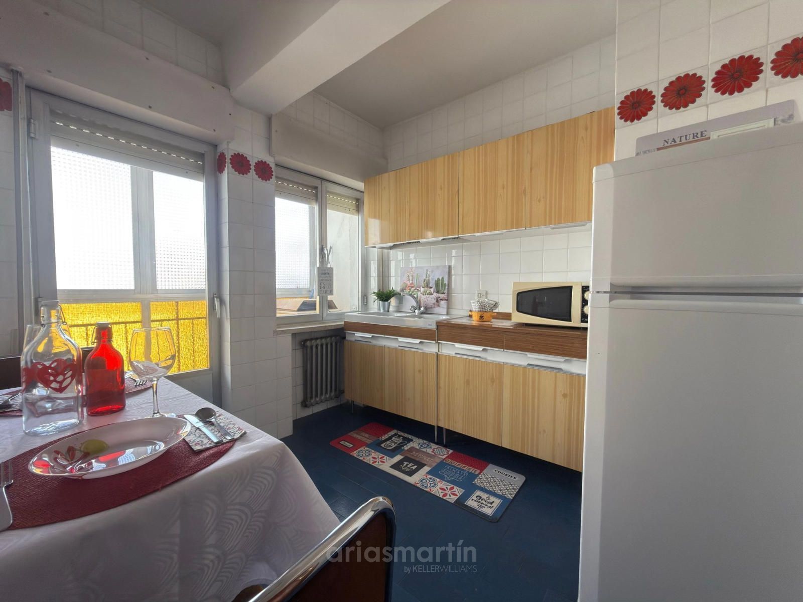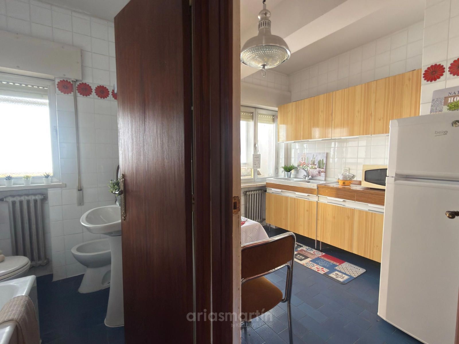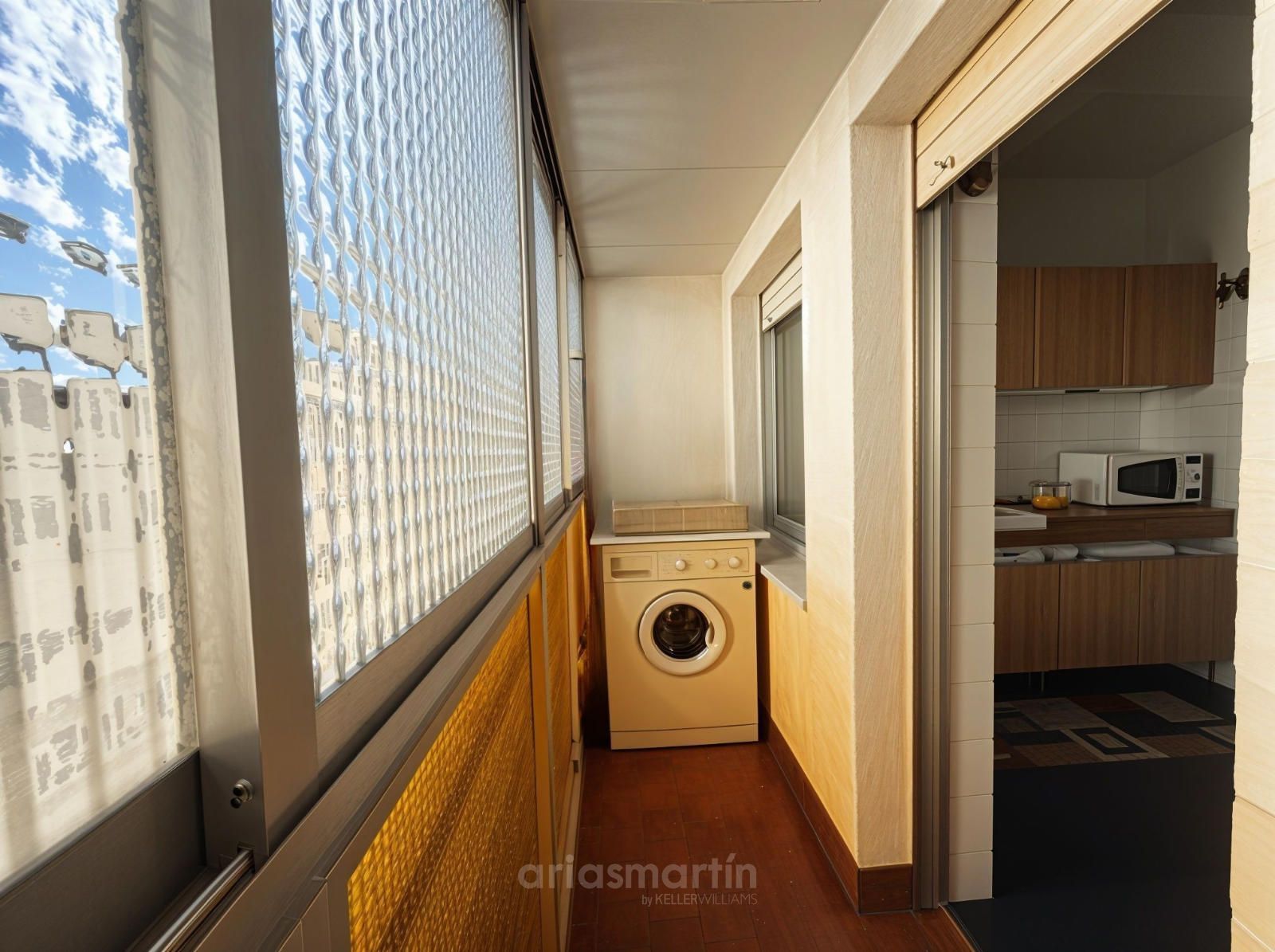Cocina independiente con despensa y balcón interior cerrado ideal para almacenamiento o zona de lavado.