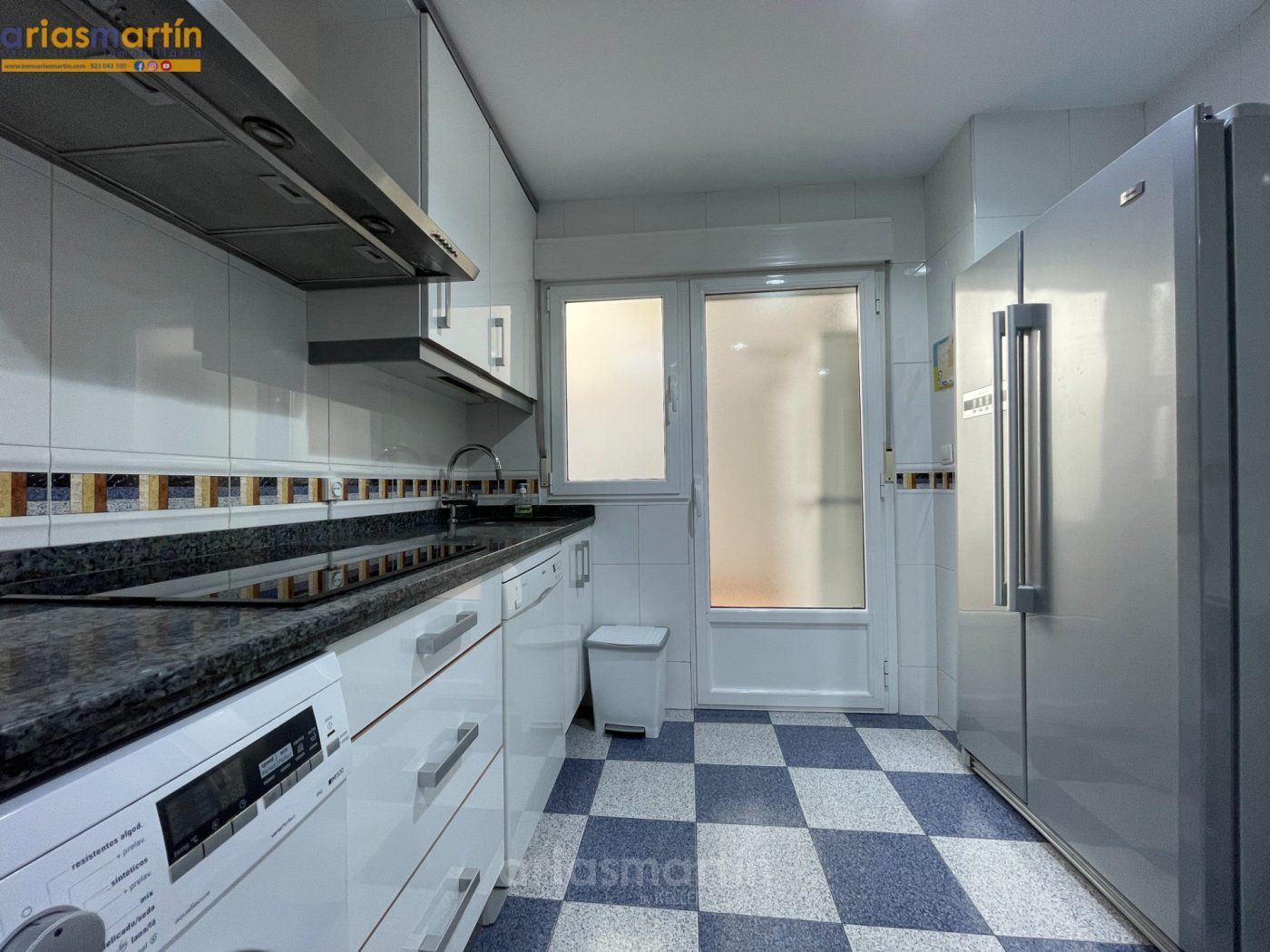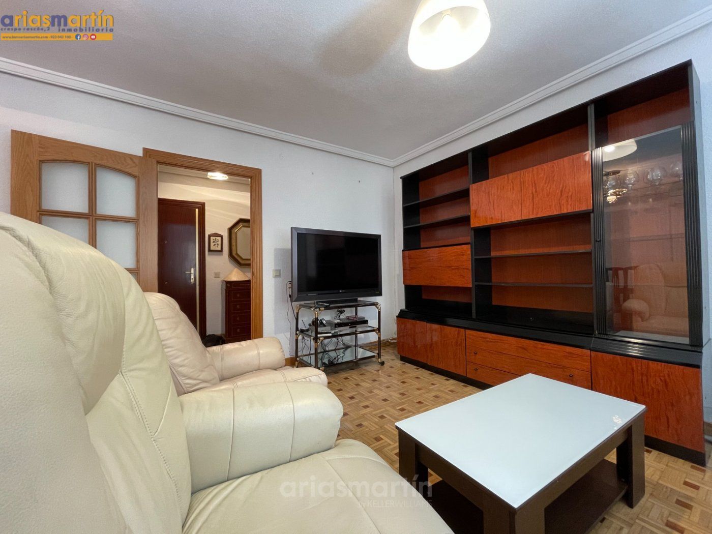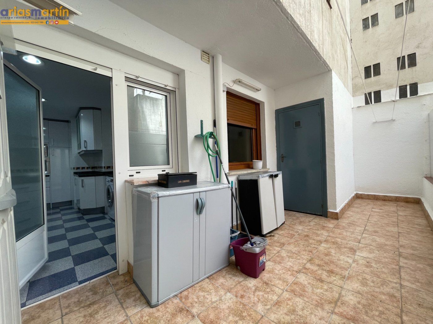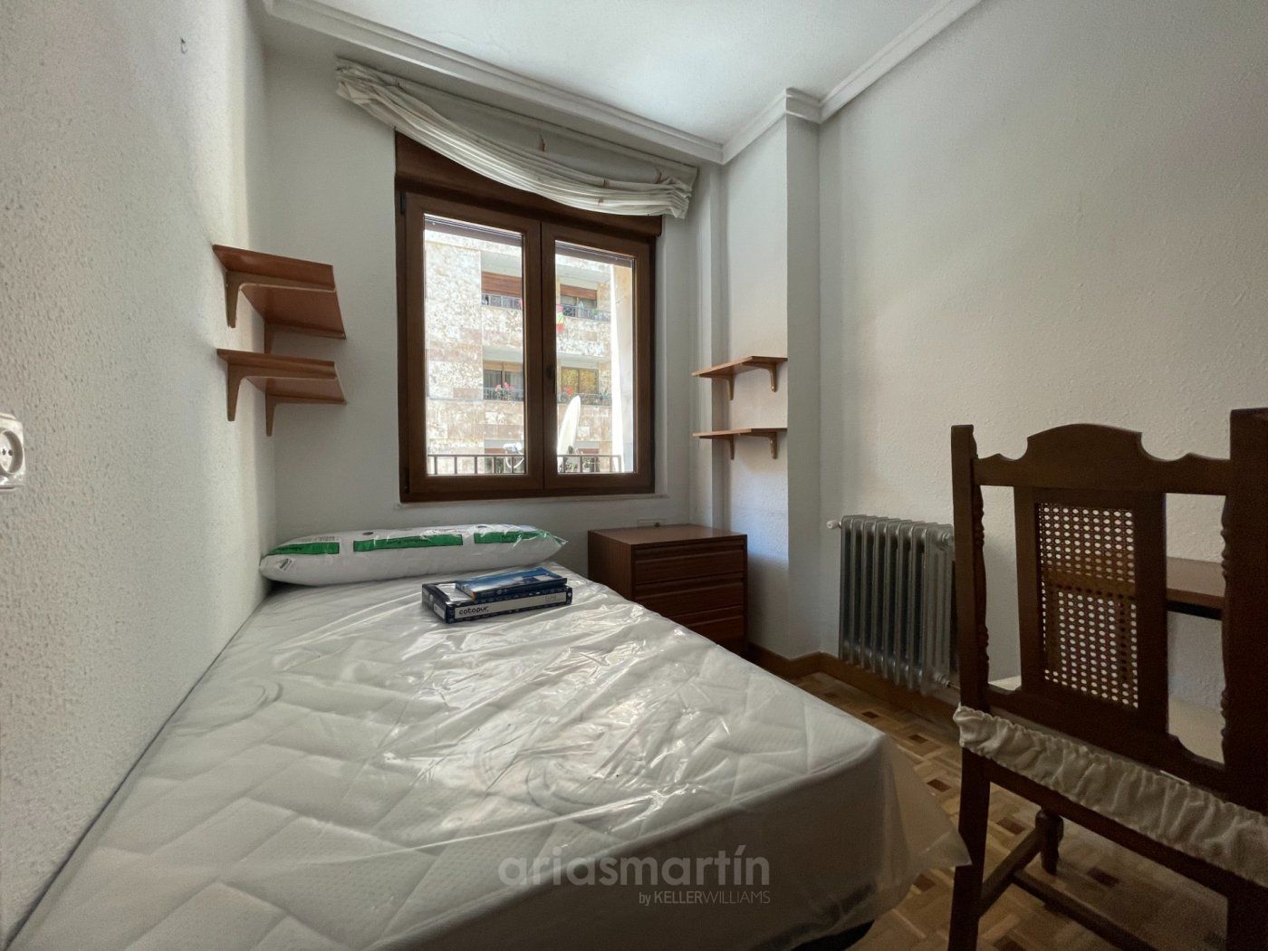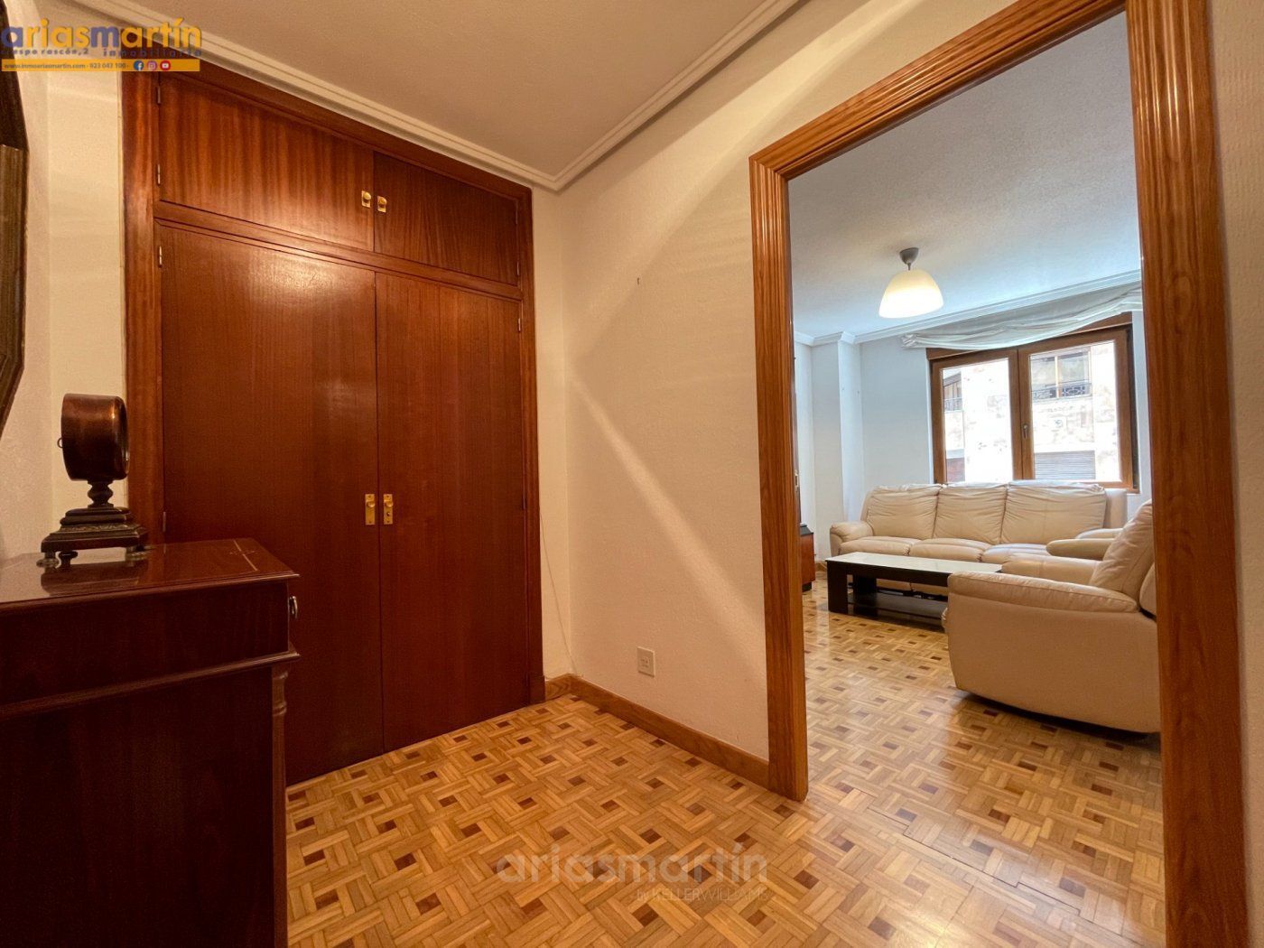 Arias Martín Inmobiliarias de Salamanca te ofrece esta vivienda que se encuentra en una primera planta en un edificio con ascensor que tiene unos 100m2 útiles distribuidos en 3 dormitorios (2 de ellos grandes y uno más pequeño) todos amueblados (en las fotos están pendientes de completar), 2 baños completos, impresionante cocina equipada con electrodomésticos de primeras marcas, patio comunitario con trastero, amplio salón con sillones de cuero y aire acondicionado y balcón.