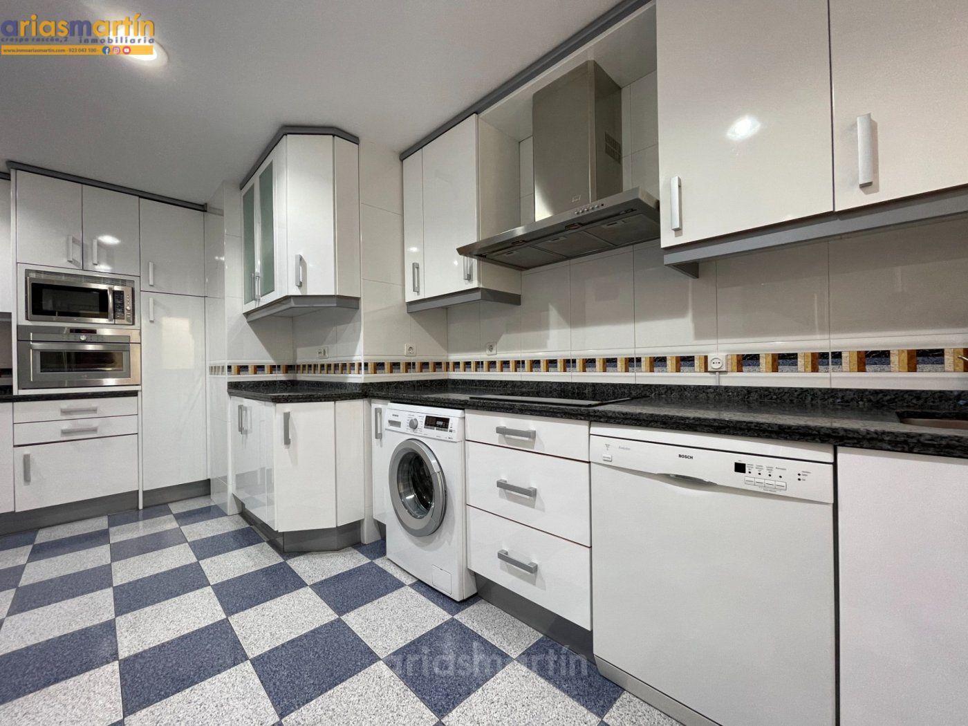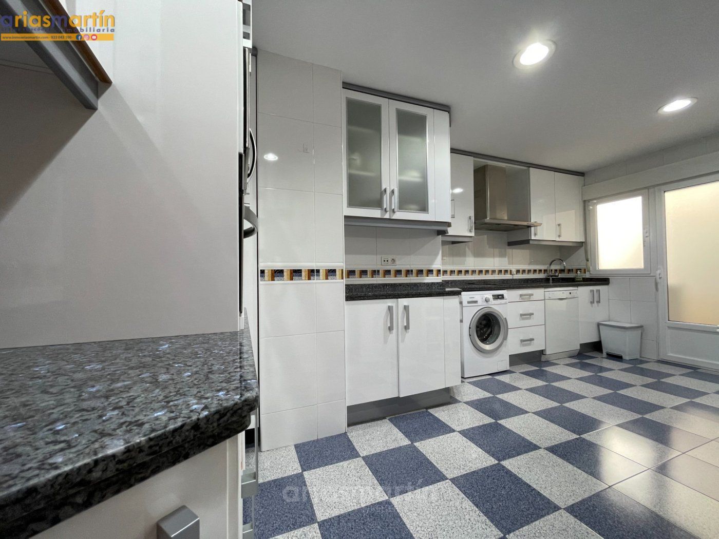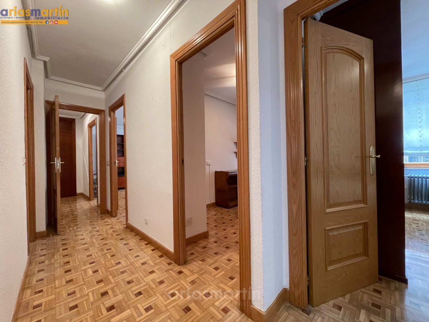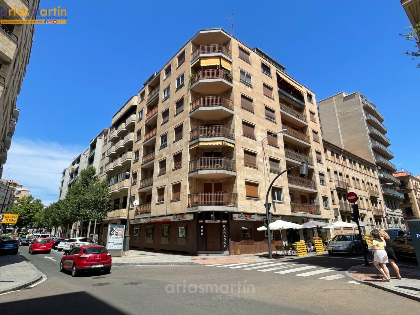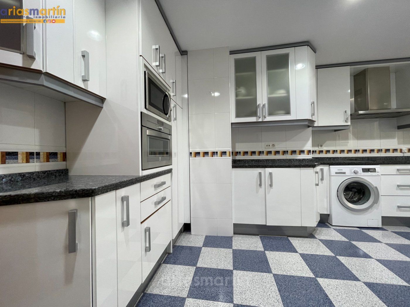 Arias Martín Inmobiliarias de Salamanca te ofrece esta vivienda que se encuentra en una primera planta en un edificio con ascensor que tiene unos 100m2 útiles distribuidos en 3 dormitorios (2 de ellos grandes y uno más pequeño) todos amueblados (en las fotos están pendientes de completar), 2 baños completos, impresionante cocina equipada con electrodomésticos de primeras marcas, patio comunitario con trastero, amplio salón con sillones de cuero y aire acondicionado y balcón.